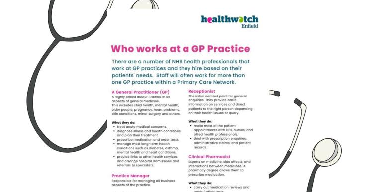 This factsheet helps you to understand who is available at your GP and what their role includes.